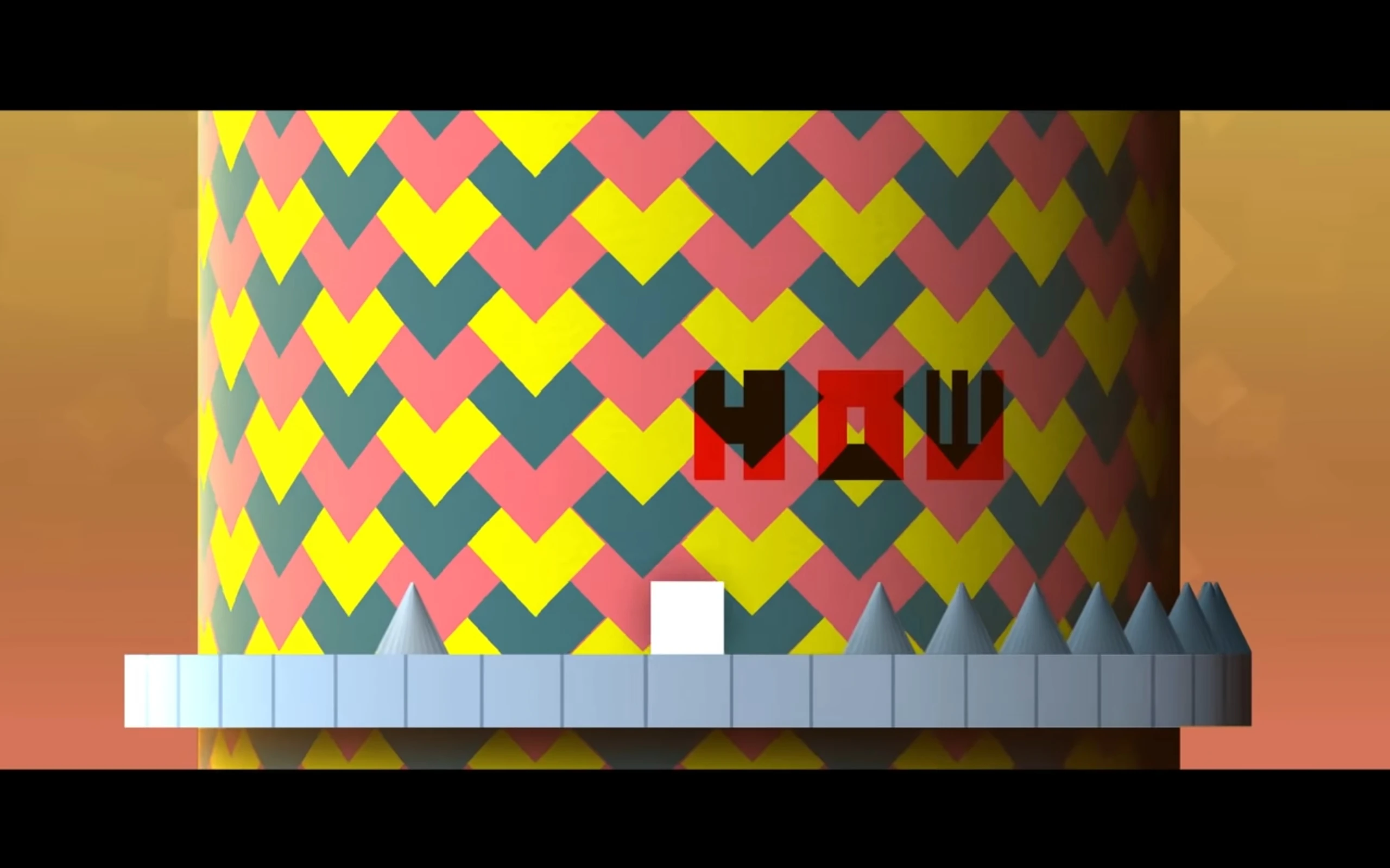 Сначала идёт лёгкий этап куба, где нужно сделать пару прыжков, а на фоне вращается цилиндр, который будет на протяжении почти всего уровня. Далее появляется надпись "HOW" (рус. КАК), которая вскоре "разливается", после чего идёт 3D-волна, где нужно облетать 3D-колонны. Затем идёт 3D-НЛО, где также нужно облетать те же 3D-колонны, потом НЛО облетает вокруг цилиндра. Дальше на экране появляется анимация, а потом изображение Солнечной системы, затем Земля на экране разделяется на две части, появляется логотип автора и...