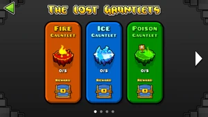 | Stereo Madness | Back On Track | Polargeist | Dry Out | Base After Base | Can't Let Go | Jumper | Time Machine | Cycles | xStep | Clutterfunk | Theory of Everything | Electroman Adventures | Clubstep | Electrodynamix | Hexagon Force | Blast Processing | Theory of Everything 2 | Geometrical Dominator | Deadlocked | Fingerdash / Fingerbang | Stay Inside Me | Ultimate Destruction?!/1// | ? | |