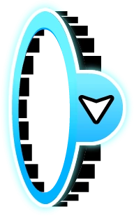 Performs small jumps [2.1333 units] (can be sustained [2.233 units]) given that there is contact with a surface and falls steeply | Performs smaller jumps [1.3583 units] so can jump faster in succession [1.435 units] | No ceiling | In the direction of gravity; H-blocks above and below | Initial release: Stereo Madness | Initial release: Stereo Madness | Initial release: The Seven Seas | Initial release: Payload | Initial release: Press Start |