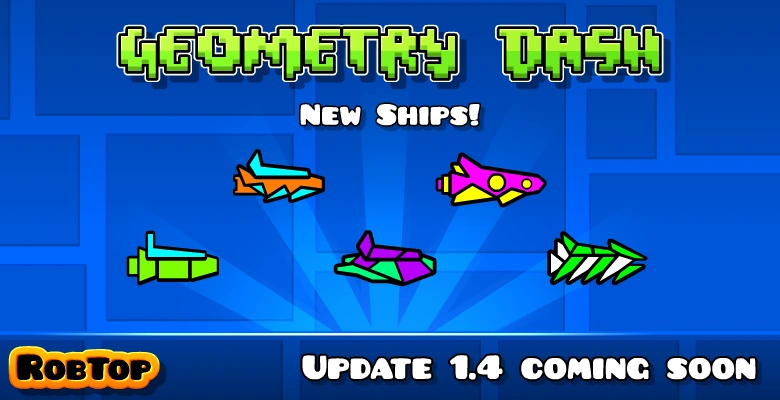 Update 1.4 was the fourth major update to Geometry Dash released on 26 December 2013 for Android and iOS. The next major update was Update 1.5, and the previous major update was Update 1.3.